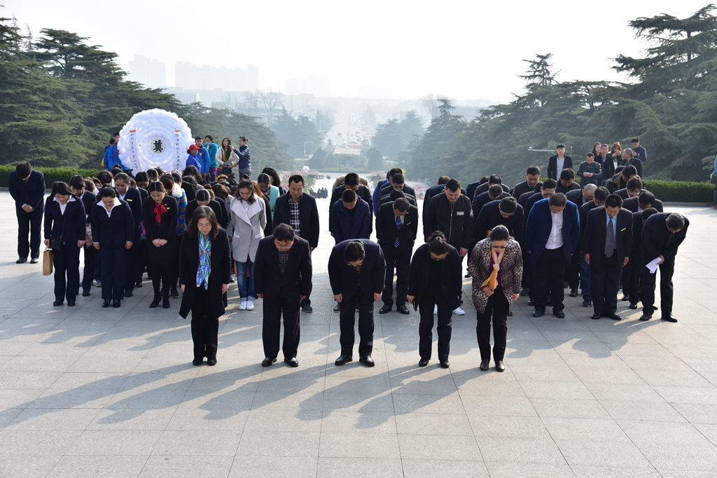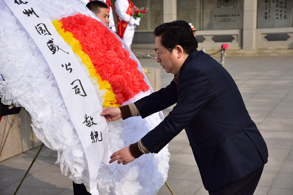 国盛公司总经理李中亚带领参加祭扫的同志,在淮海战役烈士纪念塔前庄严肃立,唱《中华人民共和国国歌》。随后,李中亚同志代表国盛公司敬献花圈,全体人员向革命先烈三鞠躬。在庄严肃穆的氛围中,全体党员宣读了入党誓词。最后,所有参加祭扫的同志,绕淮海烈士纪念塔一周,瞻仰凭吊革命烈士丰功伟绩。