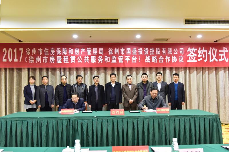 11月24日下午,徐州市住房保障和房产管理局与徐州市国盛投资控股有限公司在云泉山庄签署《徐州市房屋租赁公共服务和监管平台》战略合作协议。徐州市房管局局长闫军、副局长司成明,国盛公司总经理李中亚等领导出席会议并讲话。