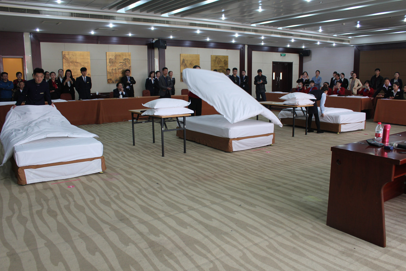 4月11日上午,技能大比武在云泉山庄拉开帷幕。本次活动包括中式铺床、中餐宴会摆台、烹饪、点钞、打字、公文写作等10个比赛项目,同时设置了茶艺、前台接待、焊接、倒车移库等6个展示项目,全面考察了职工的各项技能水平。活动中,各单位团结一心,参赛选手精神饱满、积极投入,出色地完成了各项比赛。在宴会摆台、中式铺床、点钞、打字等项目比赛中,选手们从容的心态,娴熟的动作,为现场的观众展示了一场场视觉盛宴;烹饪比赛中,大家拿出各自本领,勇于创新和突破,精湛的技艺赢得了裁判的赞赏,树立了国盛集团良好的餐饮品牌形象;通过茶艺展示,使大家得到了美的享受和艺术的熏陶……