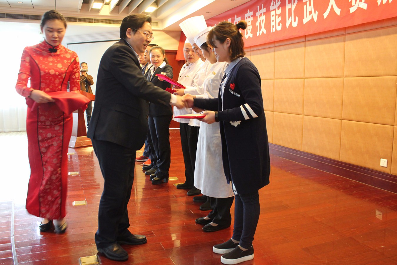 经过两天紧张有序的比赛,4月12日下午技能大比武活动落下帷幕,共31名员工获得项目比赛奖,22名员工获得项目展示奖。国盛集团总经理李中亚、副总经理宋超、国盛酒店及小南湖管理公司总经理周刚、云泉山庄副总经理杨国华分别为获奖选手颁发荣誉证书。最后,李中亚总经理致辞,他表示技能大比武活动是学技术、练本领的重要方式之一,希望各单位、各部门能经常性地开展形式多样的技能比赛。同时,他希望获奖选手在以后的工作中能再接再厉,充分发挥自己的技能特长,取得更大的进步;并鼓励所有人员要不断加强技能学习、苦练内功,不断提高员工队伍的整体素质和综合水平,进而推动国盛集团的经营管理再上一个新台阶。