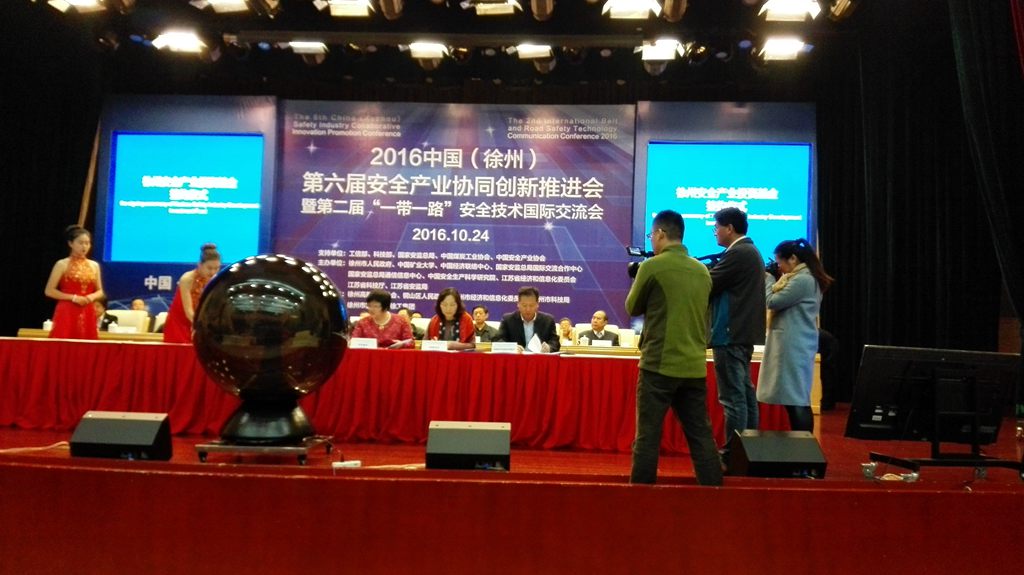 10月24日,2016中国安全科技产业协同创新推进会暨第二届“一带一路”安全产业发展国际交流会在徐举行。国务院安委会专家委员会副主任郭炎炎、国家安监总局总工程师兼规划科技司司长吴鑫,徐州市市长周铁根、副市长李燕,以及中联部、工信部、科技部、安监总局、煤炭工业协会有关司局领导,国内安全产业有关企业和高校、研究院所负责人,“一带一路”沿线部分国家官员和专家等350多名嘉宾参加活动。国盛公司董事长赵丽出席会议并参加签约仪式。